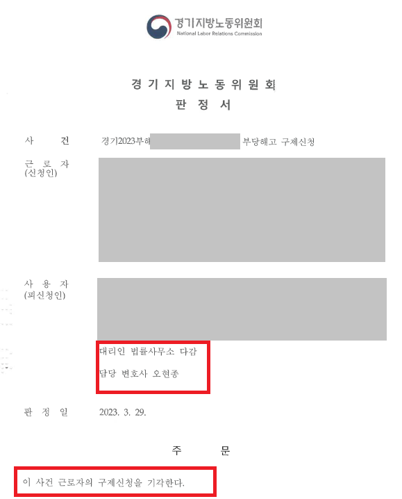 최근 병원은 운영하는 사용자를 대리해 부당해고 구제신청 사건을 받아 기각(회사 승소) 결정을 받은 성공 사례가 있어 소개해 드립니다.