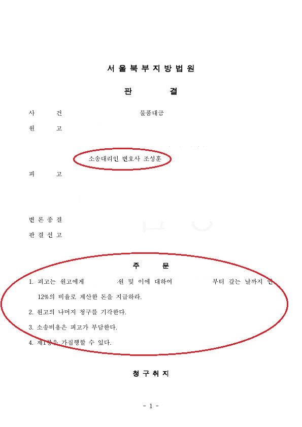 (소송비용 역시 전부 상대방 부담으로 나옴)