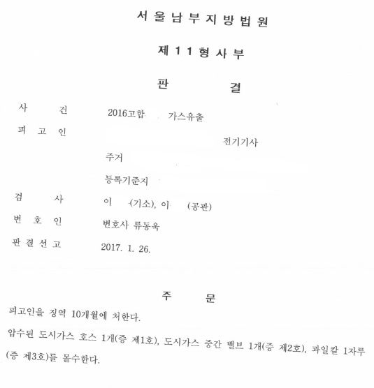 피고인은 경제적인 문제로 고민하고 현실을 비관하다가 가스를 마시고 자살하기로 마음을 먹었습니다. 피고인은 주방 싱크대에 놓여 있던 과일칼로 가스레인지와 연결되어 있던 도시가스 호스를 절단하려 하였으나 절단되지 않자 장롱에 있던 펜치를 가지고 와 호스를 잡아 당겨 밸브 부분과 호스를 분리하여 약 22분 이상 가스를 유출시켰습니다. 피고인은 전처가 암으로 사망을 하였고, 공사현장에서 일을 하고 있었으나 건물이 붕괴되는 사고가 발생하여 40여일 동안 공사를 하지 못해 경제적으로 매우 어려운 상황이었습니다. 피고인은 수입이 전혀 없는 상태였고 채무는 1억 원이 넘었죠. 피고인은 이 사건 이전 두 번의 자살 시도가 있었습니다. 그민큼 피고인에게 현실은 지옥 같았던 것이죠. 위 사안처럼 가스밸브 부분을 분리하여 가스를 유출한 경우 가스유출되가 성립합니다. 저 역시 처음 들어보는 죄명이었는데, 특별법도 아닌 형법에 규정이 있더군요. 제172조의2(가스·전기등 방류) ①가스, 전기, 증기 또는 방사선이나 방사성 물질을 방출, 유출 또는 살포시켜 사람의 생명, 신체 또는 재산에 대하여 위험을 발생시킨 자는 1년 이상 10년 이하의 징역에 처한다. ②제1항의 죄를 범하여 사람을 상해에 이르게 한 때에는 무기 또는 3년 이상의 징역에 처한다. 사망에 이르게 한 때에는 무기 또는 5년 이상의 징역에 처한다. 공중의 생명, 신체 및 재산에 심각한 피해를 입힐 수 있다는 점에서 법정형이 상당히 무겁게 되어 있습니다. 피고인은 자살을 시도하기 위한 동기를 가지고 있었고, 그 이후 피고인은 자칫 큰 피해가 발생할 것을 생각하고 경찰에 신고까지 하였습니다. 피고인은 전과가 있었고, 이 사건은 누범에 해당하여 실형이 불가피했습니다. 이에 법원은 징역 10월을 선고했습니다. |