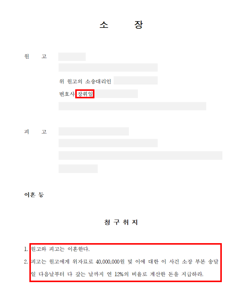 또한 피고는 의뢰인에게 위자료 4천만원을 지급하라고 하였습니다.