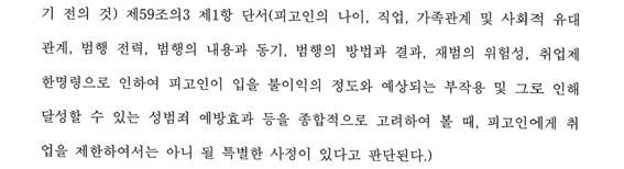 심지어 1심에서 인정되었던 취업제한 명령이 2심에서는 면제되었고요!