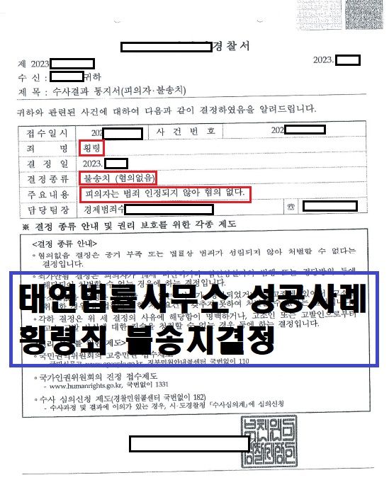 그 결과, 의뢰인의 사건은 혐의 없음을 인정받아 불송치 결정을 수령하게 되었습니다!