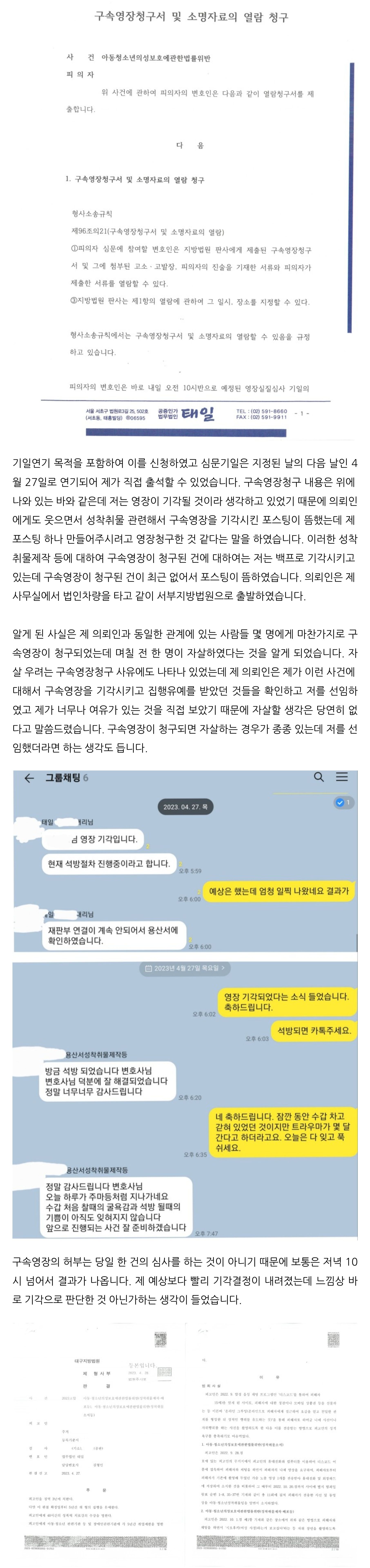 성착취물제작죄에 대하여 구속영장이 청구되었으나 구속영장이 기각되어 이를 소개합니다. 구속영장이 기각된 당일에는 제 의뢰인 중 2명이 추가로 집행유예를 받고 석방되어 하루에 총 3명이 석방되는, 저로서도 변호사 생활을 하면서 처음 있는 일이 있었습니다.
