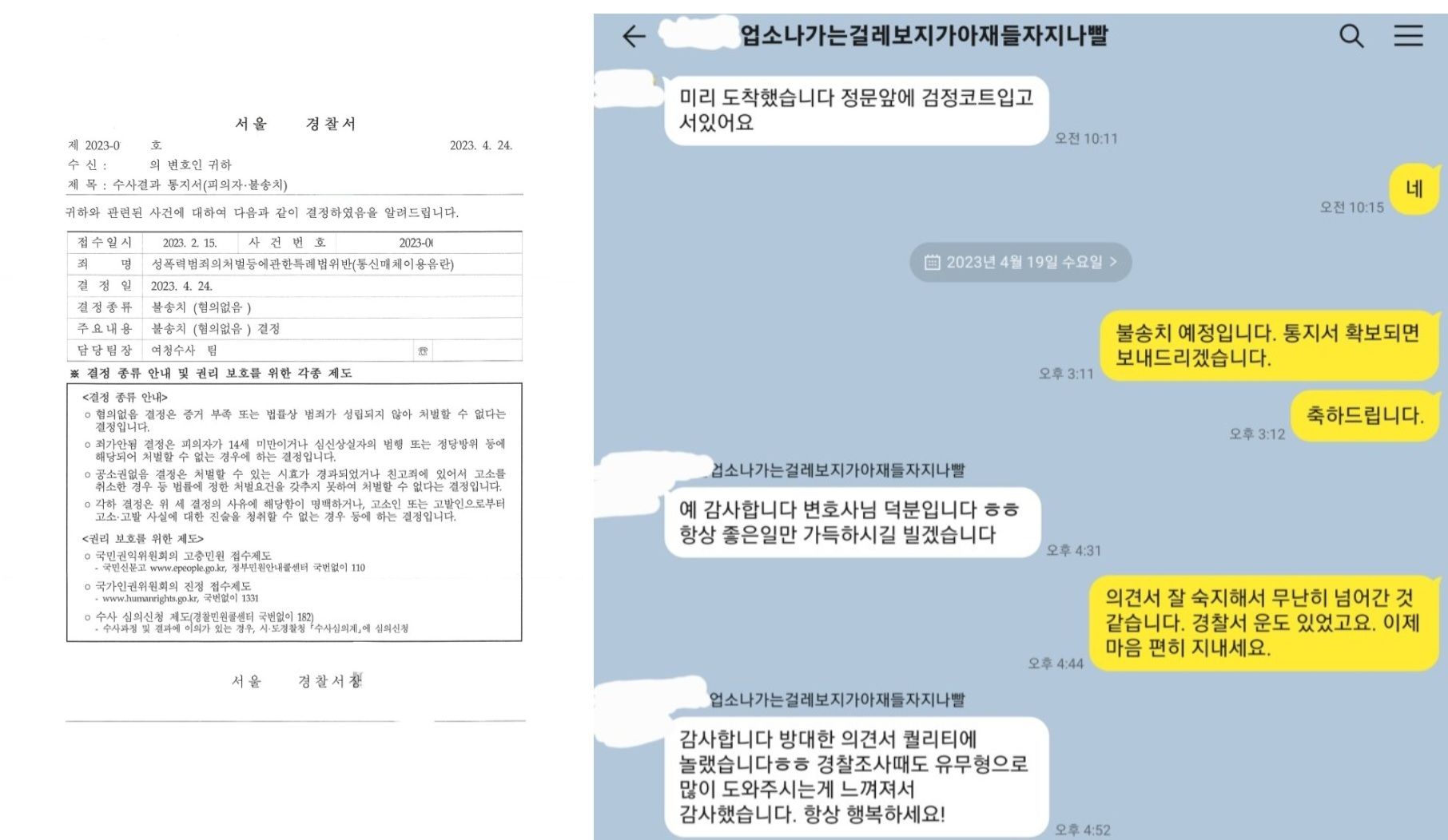 이 경찰서에서는 통매음으로 이전에 5번이나 불송치결정을 받은 적이 있었습니다. 예상대로 편하게 조사가 진행되었고 6번째 불송치결정을 전달해줄 수 있었습니다.