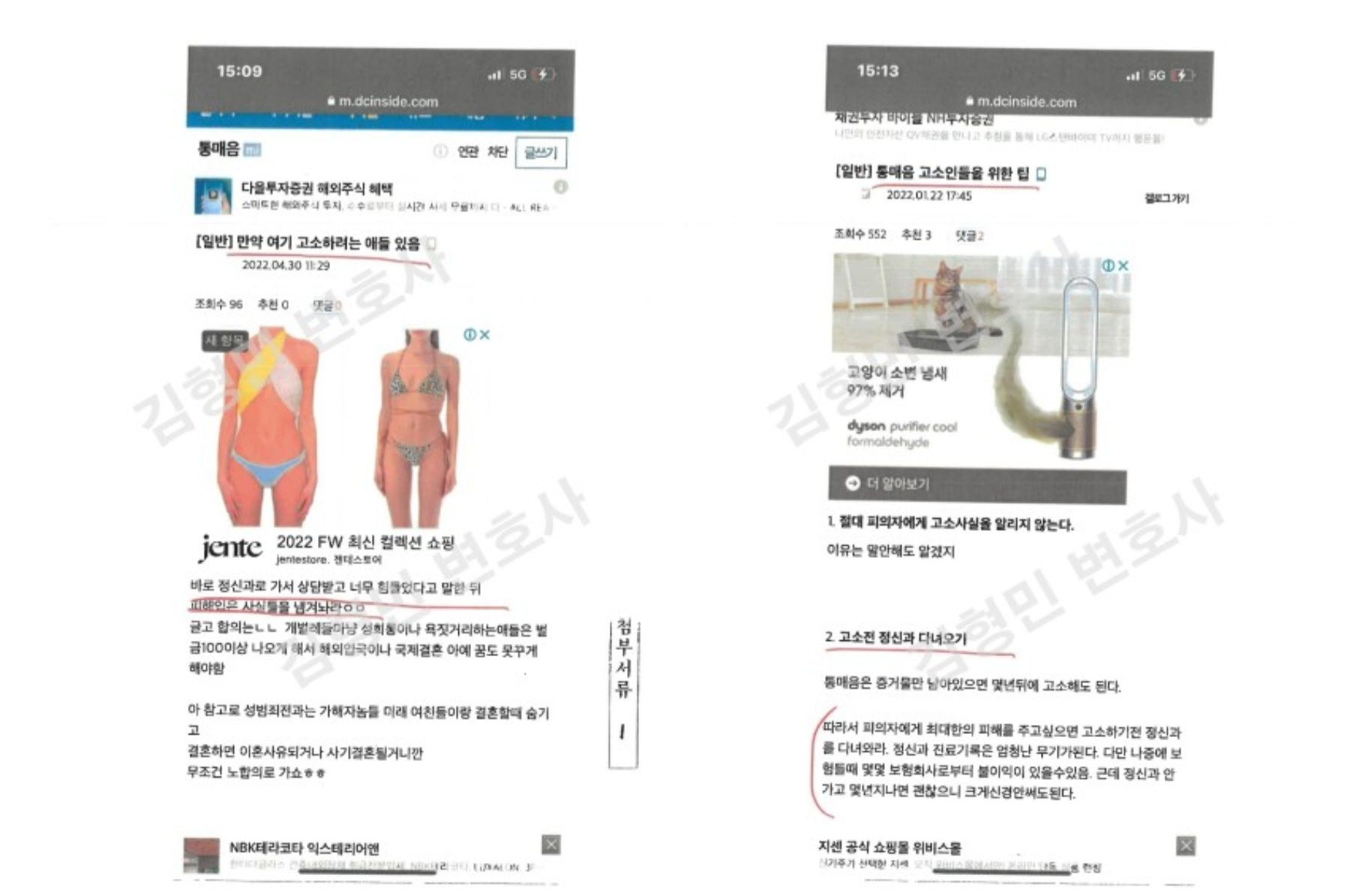 다수의 사람들을 고소하였다는 것은 기존 증거기록에 포함되어 있었던 것이 아니라 제가 증인신문기일 법정에서 피고인 측 증거로 제출한 것인데 증인이 상당히 당황하는 모습을 보였던 기억이 납니다. 많은 자료를 제출하였고 판결문에서 언급된 주장이 전부는 아니며 제출한 자료의 전부도 아니나 여기서는 간단하게 하나만 언급하겠습니다.
