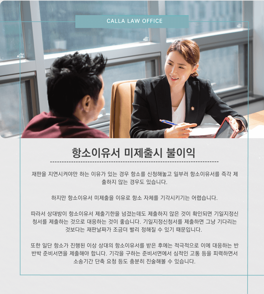 하지만 항소이유서 미제출을 이유로 항소 자체를 기각시키기는 어렵습니다.