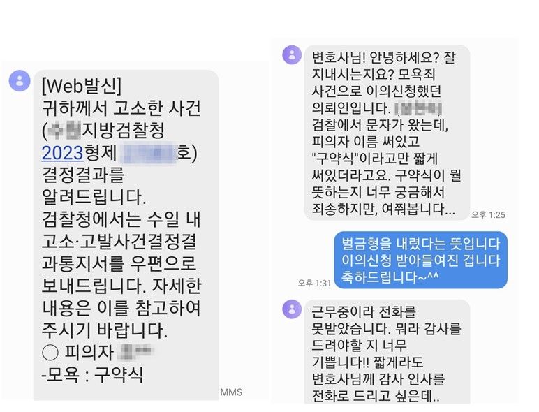 사건 결과에 너무나도 만족하고 기뻐하셨습니다.