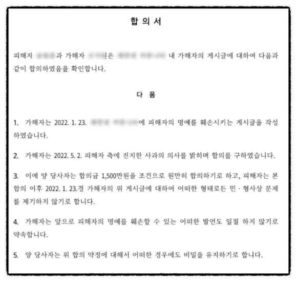 저희가 명예훼손 사건에서 1,500만 원이라는 합의금을 도출할 수 있었던 이유가 무엇일까요?