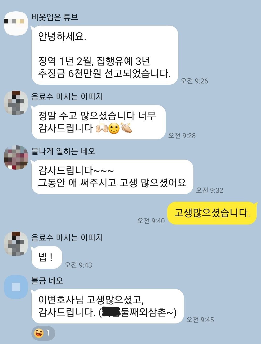 <해당 사건의 실제 판결문과 의뢰인의 감사인사 입니다>