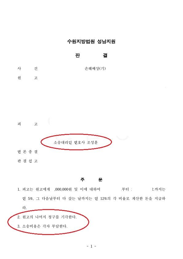 원고 청구금액의 상당부분을 전부 기각시킬 수 있었습니다.