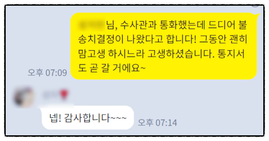 더하여 여러분이 계속해서 전화해서 확인하는 것도 현실적으로 쉽지 않습니다. 수사관이 여러 사건을 맡고 있다 보니 귀찮게 여길 가능성이 크지요.