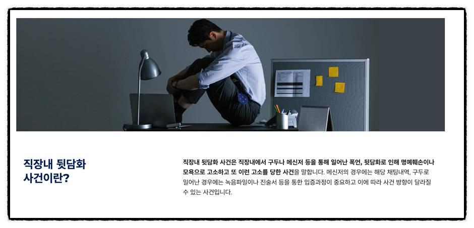![[명예훼손/모욕] 고소 당하신 분들만 보세요 #직장내 명예훼손](/_next/image?url=https%3A%2F%2Fd2ai3ajp99ywjy.cloudfront.net%2Fuploads%2Ftitleimage%2Foriginal%2F5c9bb7aa01c5edf7776c19d5-original.jpg&w=3840&q=75)