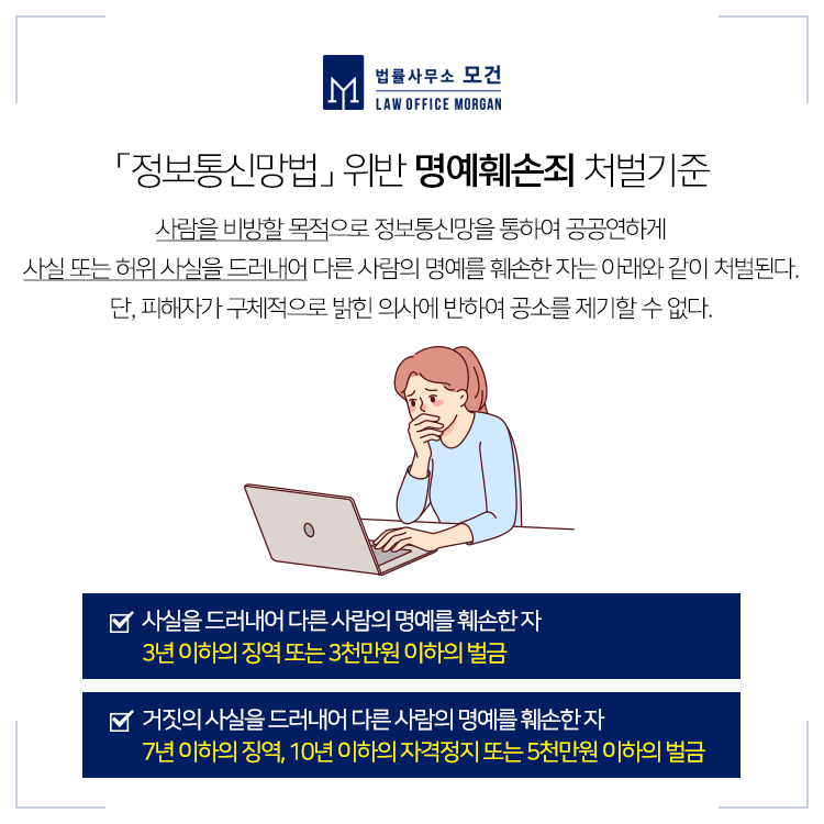 법률사무소 모건의 이다슬 대표 변호사는 명예훼손죄 사건에서 형사고소 및 민사소송 모두를 법률대리한 다양한 성공케이스를 보유하고 있으며, 전 과정에 걸친 법률조력을 제공하고 있습니다. 상담부터 전 과정을 대표 변호사가 꼼꼼히 진행하고 있으니 도움이 필요하신 분들은 법률사무소 모건으로 문의하세요.