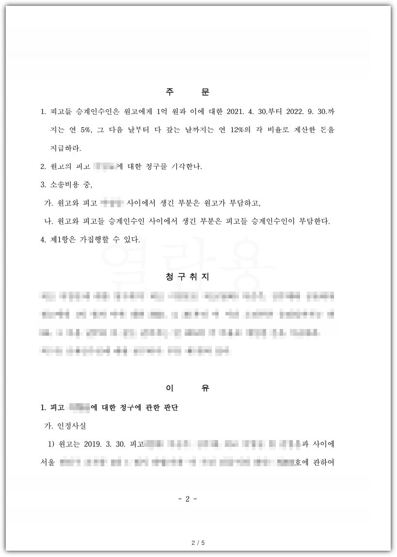 임차인으로서 임대차계약기간 만료 후 임대인이 각종 이유를 들어 임대차보증금 지급을 미루는 경우가 참 많습니다. 연속적으로 다른 집에 이사를 가면서 임대차보증금을 지급해야하는 임차인의 입장에서 이 경우 참으로 골치아픈 경우가 아닐 수 없는데요, 이 사건의 경우에는 심지어 임대인 중 1인의 사망으로 소송기간이 더욱 길어지게 된 사건입니다.