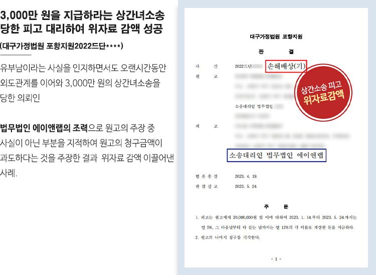 그 결과 대구지방법원 포항지원은 이러한 유선경 변호사의 주장을 인정하였고 위자료 1,000만 원을 감액한 금액을 지급하라는 판결을 내렸습니다.