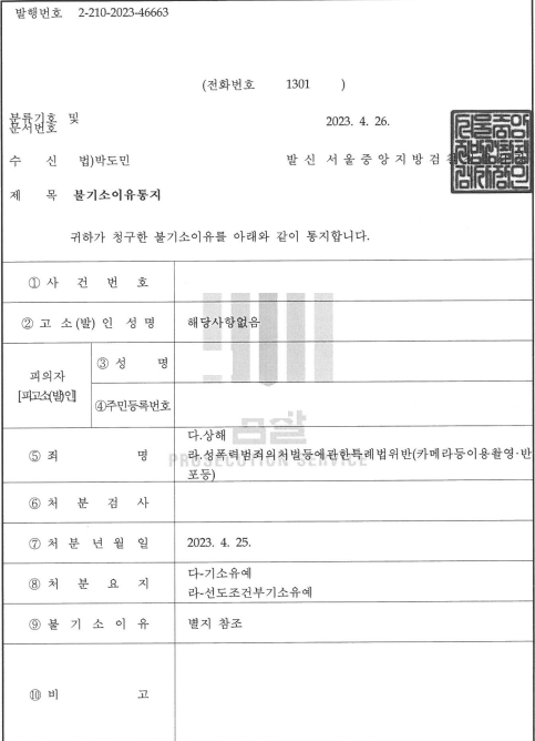 카촬죄, 상해 혐의로 입건되어 수사를 받았으나 기소유예의 선처를 받은 사례입니다.