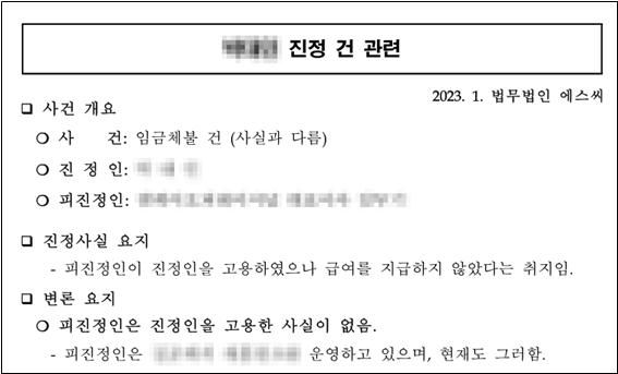 의뢰인은 지인의 권유로 회사를 운영하다가 회사를 정리하면서 발생한 여러 문제를 해결해 줄 것을 요청하면서 저희 법인을 찾아오셨습니다. 그 중 한 가지 문제가 바로 “노동청 진정 사건”이었습니다.