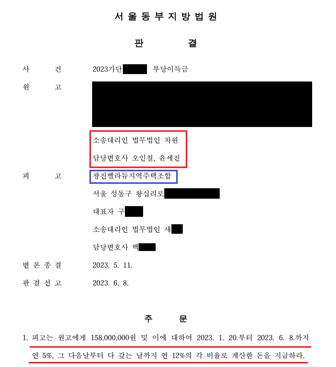 저를 찾아오신 의뢰인께서는 서울 광진구 군자동 341-17번지 일대를 사업시행지역으로 하여 아파트를 신축하는 사업을 진행하는 광진벨라듀 지역주택조합과 가입계약을 체결하시고, 해당 지역주택조합사업이 정상적으로 진행될 거라고 믿은 채, 조합원 분담금 등의 명목으로 158,000,000원의 금원을 조합 측에 지급하셨습니다.