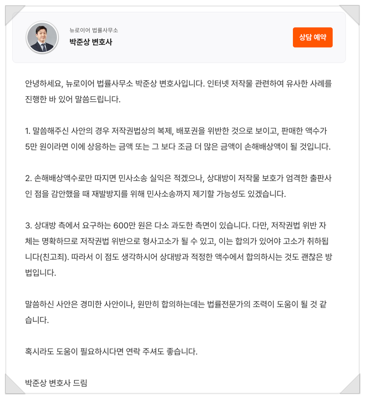 그렇기에 이렇게 변호사의 도움을 받아 사건을 해결하려 하셨을 거라 생각합니다.