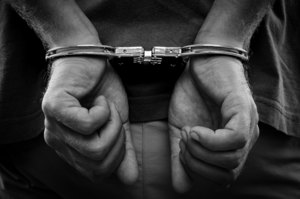 경찰에게 현행범으로 체포되었습니다.