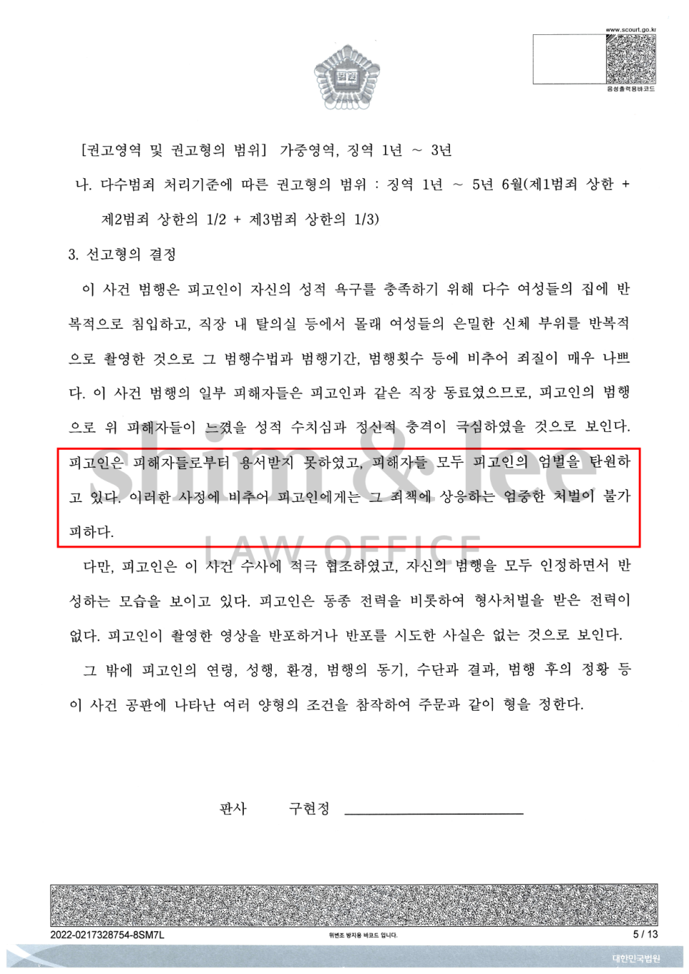 또한 피해자 변호사 의견서를 통해 가해자 범행의 계획성과 상습성, 그리고이로 인해 피해자들이 겪고 있는 고통을 자세히 설명하여 가해자를 선처해서는 안 된다고 강하게 주장했습니다.