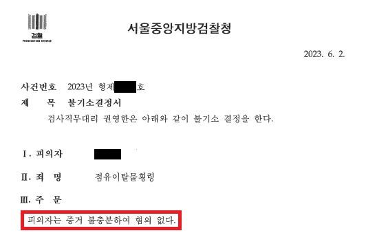 이러한 과정을 거쳐, 결국 저 이재성 변호사는 경찰의 송치 결정을 뒤집어 검찰에서 불기소결정(혐의없음)이라는 최상의 결과를 얻어낼 수 있었습니다. 이로써 의뢰인께서는 경찰 단계에서 자칫 잘못 대응하여 억울하게 전과자가 될 뻔한 상황에서 벗어나 평안한 일상으로 복귀하실 수 있게 되셨습니다.
