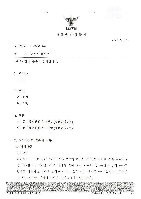 결국 고소인 진술의 신빙성이 매우 떨어지는 상황에서 피의자 진술이 오히려 일관적이고 매우 세세하였기에 피의자는 경찰단계에서 무혐의로 사건을 잘 마무리할 수 있었습니다.