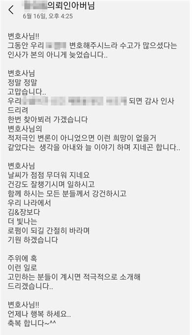 의뢰인으로부터 진심이 가득 담긴