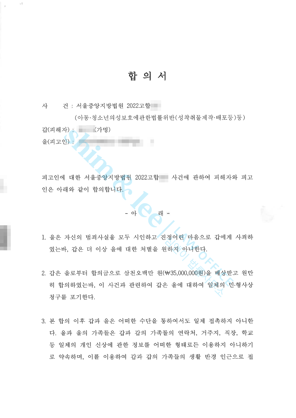 성범죄 합의에서 돈이 중요한 요소인 것을 부정할 수는 없지만, 돈이 전부는 아니라는 것을 느끼게 하는 사건들이 종종 있습니다. 때로는 잘못을 진심으로 반성하고 용서받기 위해 노력하는 과정에서 가해자 스스로 깨달음을 얻고 더 나은 사람이 되기도 하고, 진지하게 반성하고 사과하는 가해자의 모습이 닫혀 있던 피해자의 마음을 돌리기도 합니다. 진실된 사과와 용서, 새로운 기회와 회복에도 피해자 변호사의 역할이 있다는 것을 배운 사건이었습니다.