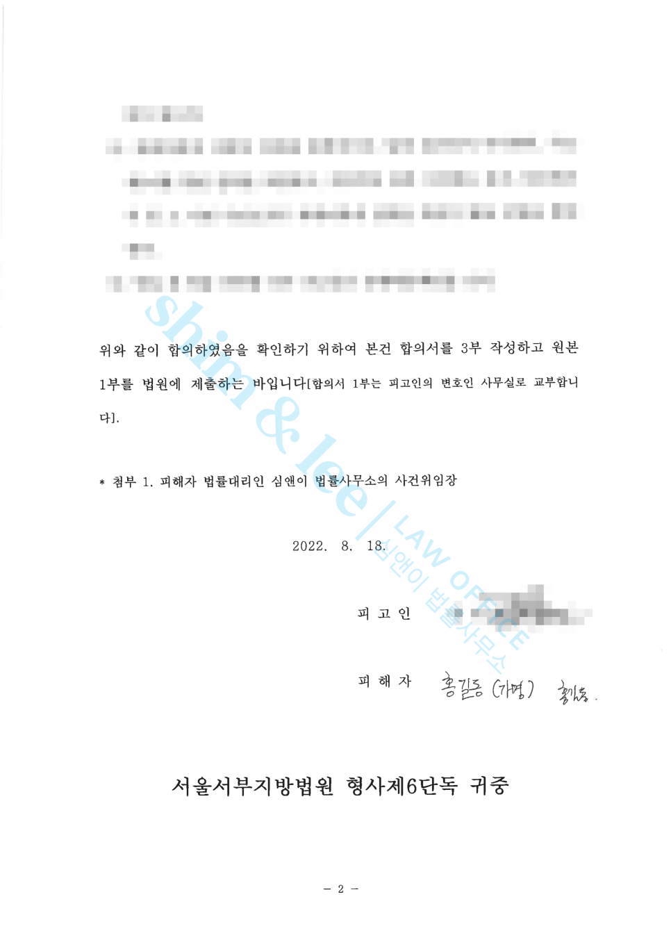 심앤이가 선임되자, 정말 500만 원밖에 없다던 가해자 변호사님은 말을 바꿔서 금액을 올리기 시작했습니다. 심앤이는 엄벌탄원서와 함께 피해자 변호사 의견서를 법원에 제출하면서 아예 합의해주지 않을 것처럼 가해자에게 겁을 주고 압박했습니다.