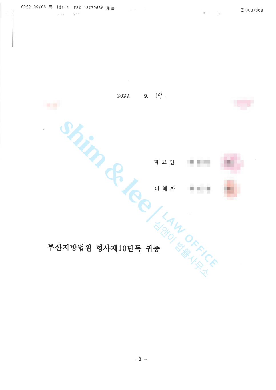 심앤이는 가해자 변호사님의 악의적인 의도를 알았기 때문에 제안을 거부하고, 곧바로 엄벌탄원서를 제출했습니다.