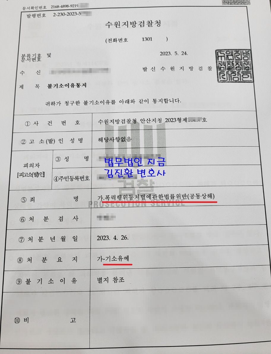 ○ 수원지방검찰청 안산지청 처분 : 불기소결정(기소유예)