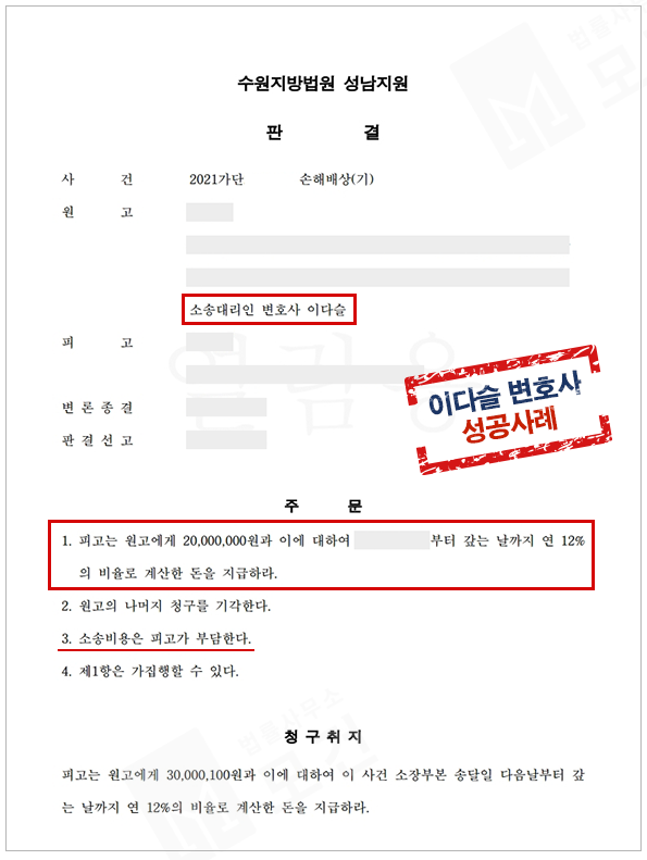 특히 원고가 어린 자녀들을 위해 가정을 지키고자 노력하고 있으나, 이 사건으로 매우 큰 충격으로 건강과 소득활동에도 큰 타격을 입게된 점 등을 적극 주장하였고, 그 결과 법원으로부터 위자료 2,000만원을 인용받을 수 있었습니다.