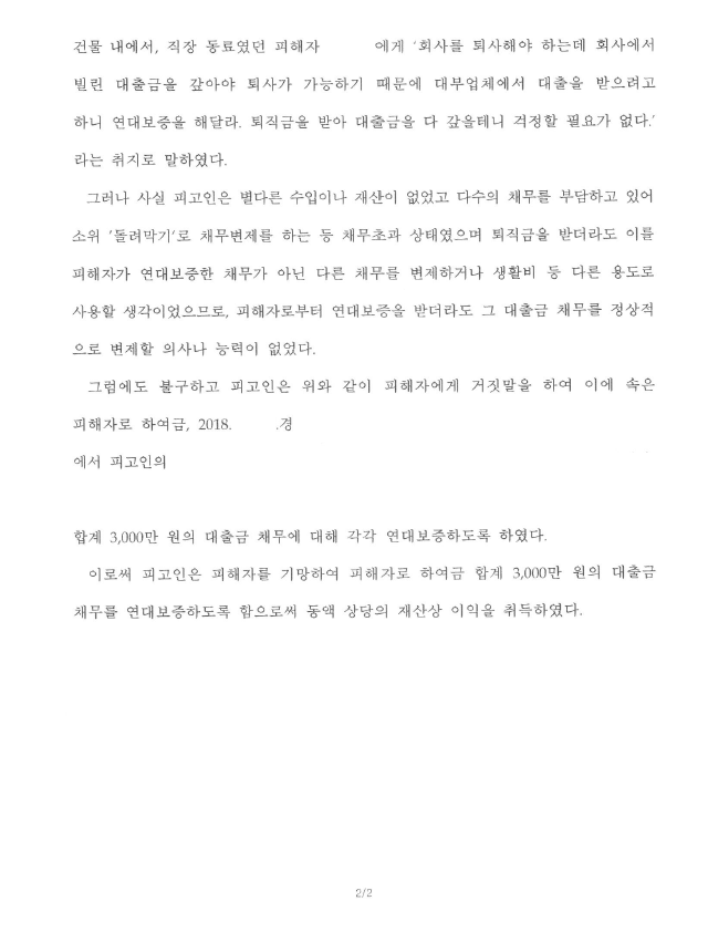 저는 즉각 피고인을 사기로 고소하여 기망행위를 주장 입증하였고 검사는 저희의 주장을 받아들여 사기로 기소하자 피고인은 의뢰인에게 합의를 요청하면서 피해액을 변제하였습니다.