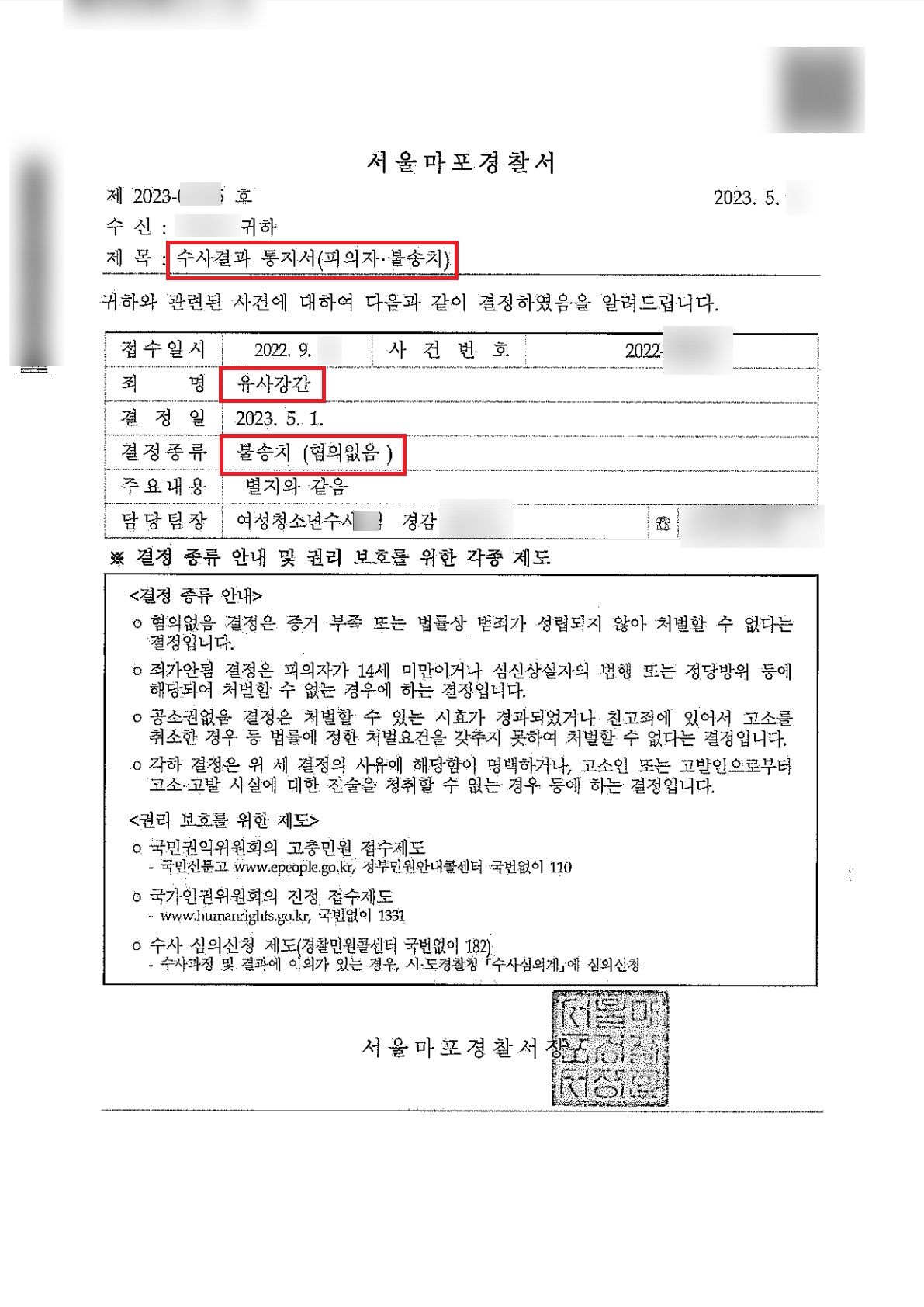 그러나 의뢰인은 다행히 경찰 초기 단계부터 변호사를 선임하였고, 경찰단계부터 적극적으로 대응한 결과 불송치 결정을 받을 수 있었습니다.