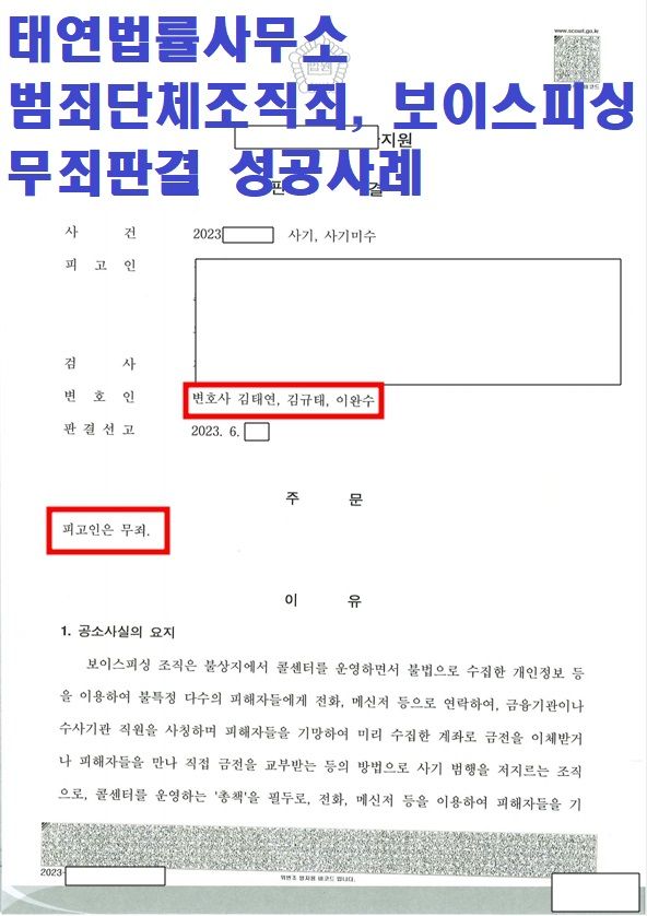 오늘은 법률사무소에서 또 한번 보이스피싱 피고인 무죄 판결에 성공한 사례가 있어 소개해드리려고 합니다.