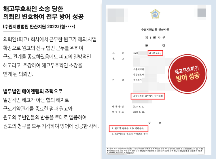 일방적으로 해고한 사실이 없었던 피고는 억울한 마음에 저희 법무법인 에이앤랩을 찾아오게 되었습니다.