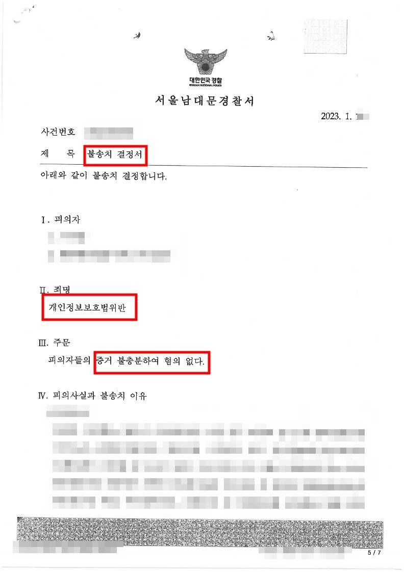 │불송치결정(혐의없음)