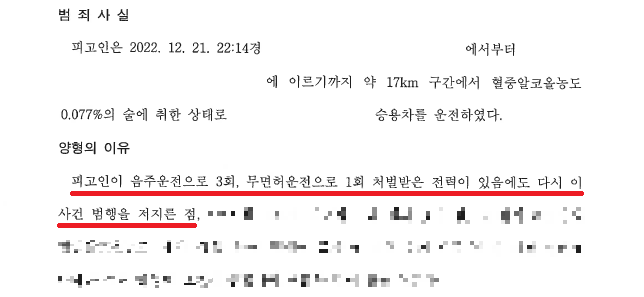 그럼에도 A씨는 2022. 12. 21. 22:14경 약 17km 구간에서 혈중알콜농도 0.077%의 술에 취한 상태로 운전을 하다가 적발되어 조사를 받은 뒤 구공판되어 재판을 받게 되었습니다.