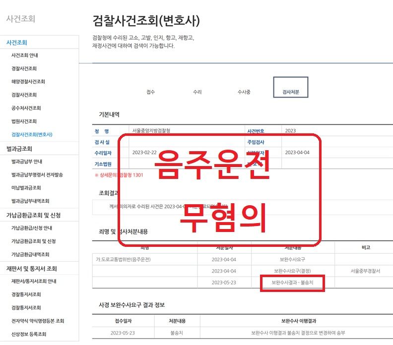 □ 의뢰인은 음주운전 혐의로 경찰조사가 진행되었고, 전선재 변호사의 조력을 받아 서울중부경찰서에서 불송치결정(무혐의)으로 종결된 사안입니다.