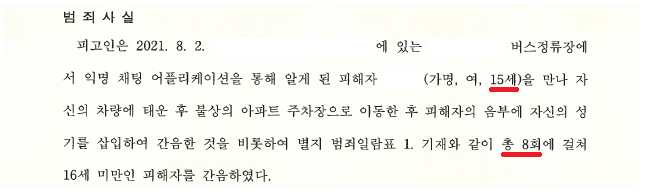 A씨는 랜덤 채팅 어플리케이션을 통해 알게 된 15세 미성년자 B양을 총 8회 간음하였다가 B양의 부모님으로부터 항의 전화를 받은 뒤 결국 고소를 당하게 되었습니다.