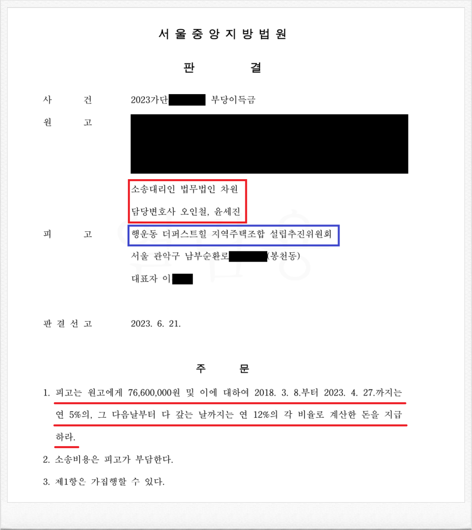 결국, 재판부는 이러한 저의 주장을 받아들였고, 피고는 의뢰인에게 기지급 받은 금원 및 이에 대한 지연손해금을 지급하라는 내용의 판결을 이끌어 내었습니다.
