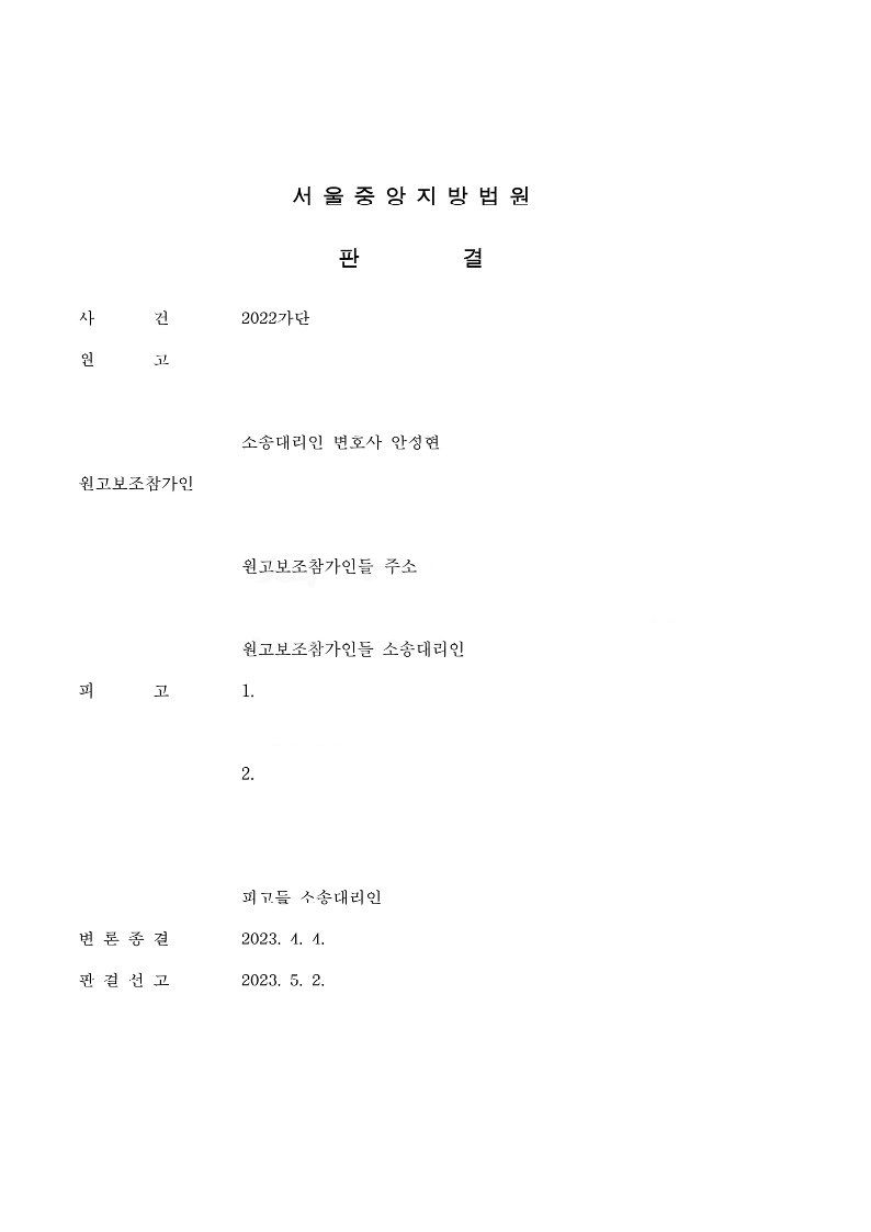 의뢰인의 사건을 맡게 되면서 음식점 운영자에게는 사용자책임을, 보험사에게는 상법 제724조 제2항에 따른 손해배상책임을 공동하여 청구하기로 하는 손해배상청구소송을 진행하기로 하였습니다. 건물소유자(임대인)에게 책임이 있을 수도 있었기에 소송 진행 중에 소송고지를 해두었고, 건물소유자도 보조참가인으로 소송에 참가하게 되었습니다.