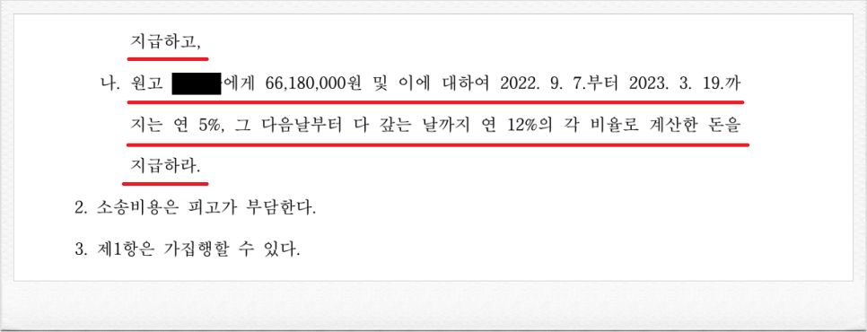 결국, 재판부는 이러한 저의 주장을 받아들였고, 피고는 의뢰인들에게 기지급 받은 금원 및 이에 대한 지연손해금을 지급하라는 내용의 판결을 이끌어 내었습니다.