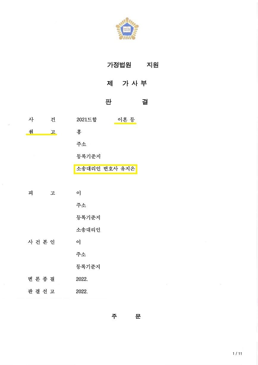 이에 저희는 남편의 모든 재산을 조회하였고, 그 과정에서 남편이 시아버지로부터 2년 전에 부동산을 증여받은 사실을 알게 되었습니다. 남편은 이는 특유재산으로 분할대상 재산에 포함될 수 없다며 적극적으로 다투었으나, 혼인 기간이 4년 이상이고, 그동안 의뢰인이 가사와 양육을 전담하며 남편을 내조하였고, 향후 혼자서 아이를 전적으로 양육해야 하는 부양적 사정이 고려되어야 한다는 점 등을 적극 강조하며 비록 특유재산일지언정 분할대상 재산에 포함되어야 한다고 다투었습니다.