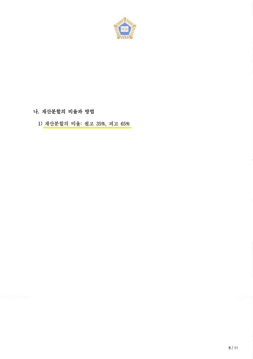 혼인 기간이 짧을 경우 특유재산이 분할대상 재산에서 빠지는 경우가 많은데, 거주지 전세보증금 외에도 시아버지가 남편에게 증여한 특유재산인 부동산까지 전부 분할대상 재산에 포함되었고, 혼인기간이 4년임에도 불구하고 재산분할 기여도로 35% 인정받으며 성공적으로 마무리가 된 사안입니다.