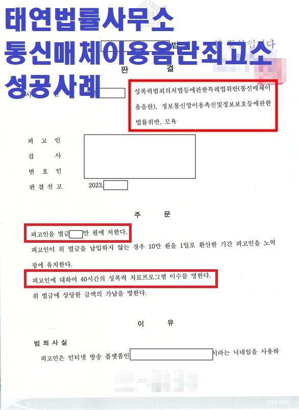 통신매체이용음란죄 고소 사건에서는 관련된 법리를 정확하게 적용하여, 상대방이 혐의를 인정받을 수 있도록 날카롭게 주장을 펼칠 수 있는 변호사가 필요하기에 수많은 통신매체이용음란죄 고소 성공 사례를 보유하고 있는 태연법률사무소와 함께 해주시기로 결정하신 것이 아닐까 합니다.