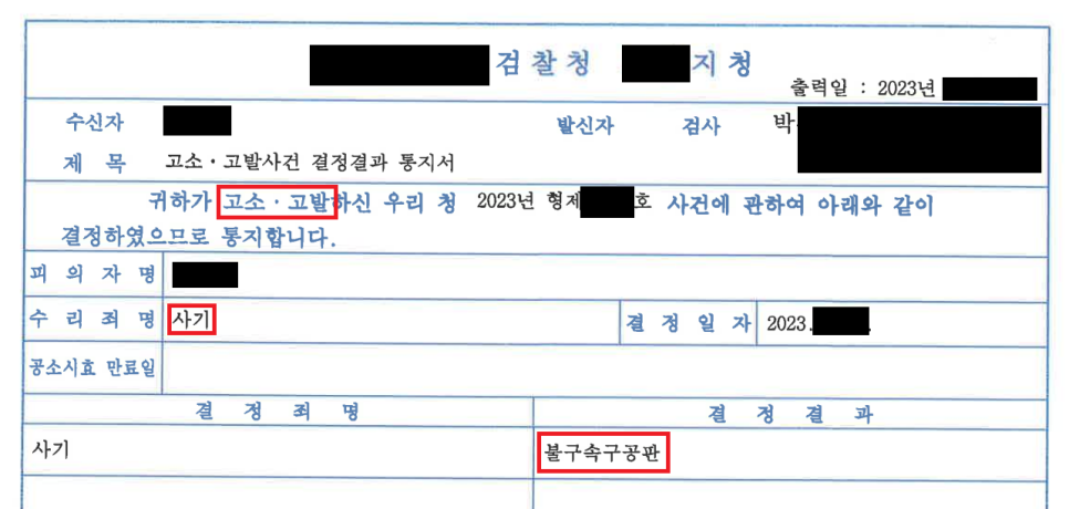 가해자의 사기 혐의에 대하여 경찰은 혐의를 인정하고 검찰로 송치했고, 검찰도 혐의를 인정하여 재판에 넘겼습니다(불구속구공판).