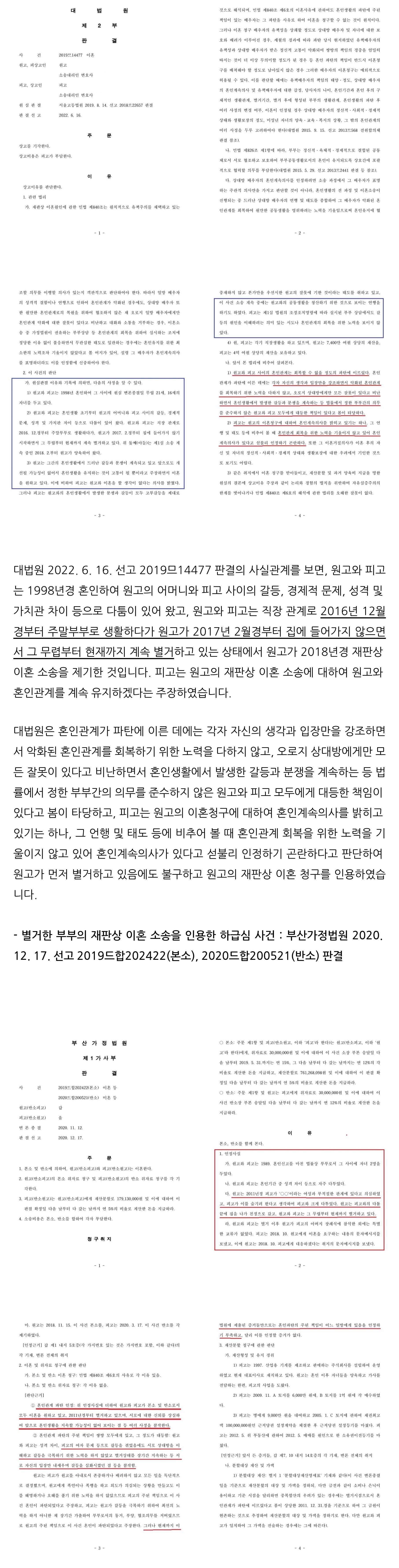 - 별거한 부부 일방이 제기한 이혼청구를 인용한 사건 : 대법원 2022. 6. 16. 선고 2019므14477 판결