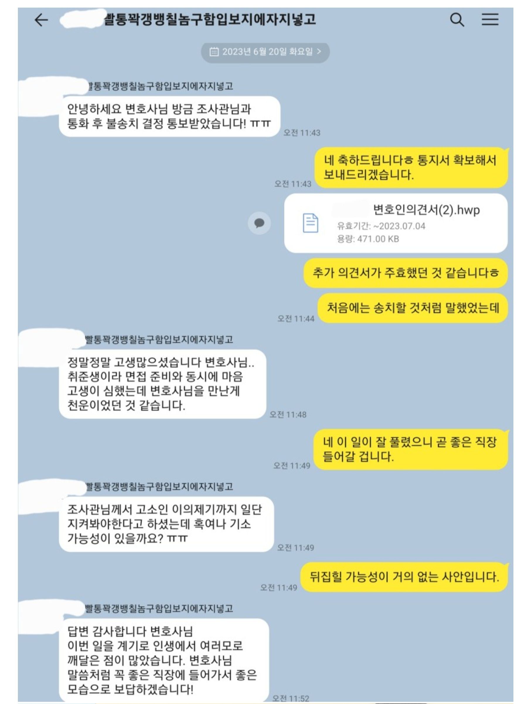 추가 제출한 의견서가 주효하였는지 어렵게 불송치결정을 받아낼 수 있었습니다.